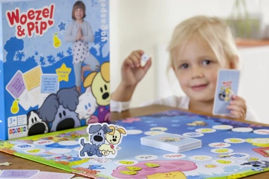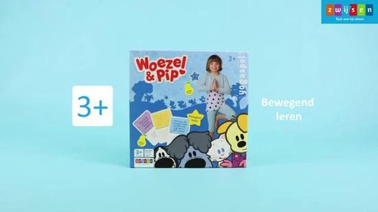 Woezel & Pip yogaspel. Dit yoga bordspel stimuleert het samen spelen en bewegend leren. Je kunt het gezellig met de hele familie spelen. Gooi met de dobbelsteen en kijk op welk vakje van het spelbord jullie uitkomen. Is dat een yogavakje? Voer dan samen de yogaoefening uit die op het spelkaartje staat. Is het een peertje? Hang dan een peertje in de perenboom. Verzamel zo zes peertjes voor tante Perenboom om het spel samen te winnen. Maar pas op! Als de zes sterren eerder in de lucht hangen, hebben jullie gezamenlijk het spel verloren. Je speelt in dit spel niet tégen elkaar, maar mét elkaar. Wandelen jullie mee met Woezel & Pip en al hun vriendjes door de Tovertuin?