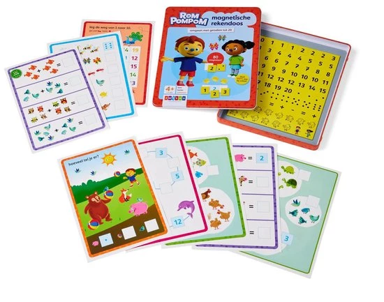 Op school maken kleuters kennis met getallen. Met deze rekendoos in handig meeneemformaat leren ze spelenderwijs getallen te herkennen en te benoemen, en oefenen ze met tellen. Ze kunnen zelfs sommetjes maken als ze daaraan toe zijn. Ze kiezen een werkblad en leggen dat in de deksel van de rekendoos. Daarna kunnen ze de rekenmagneten erop leggen. Deze doos is leuk voor thuis ?n onderweg, want de magneten blijven in de deksel van de doos plakken!